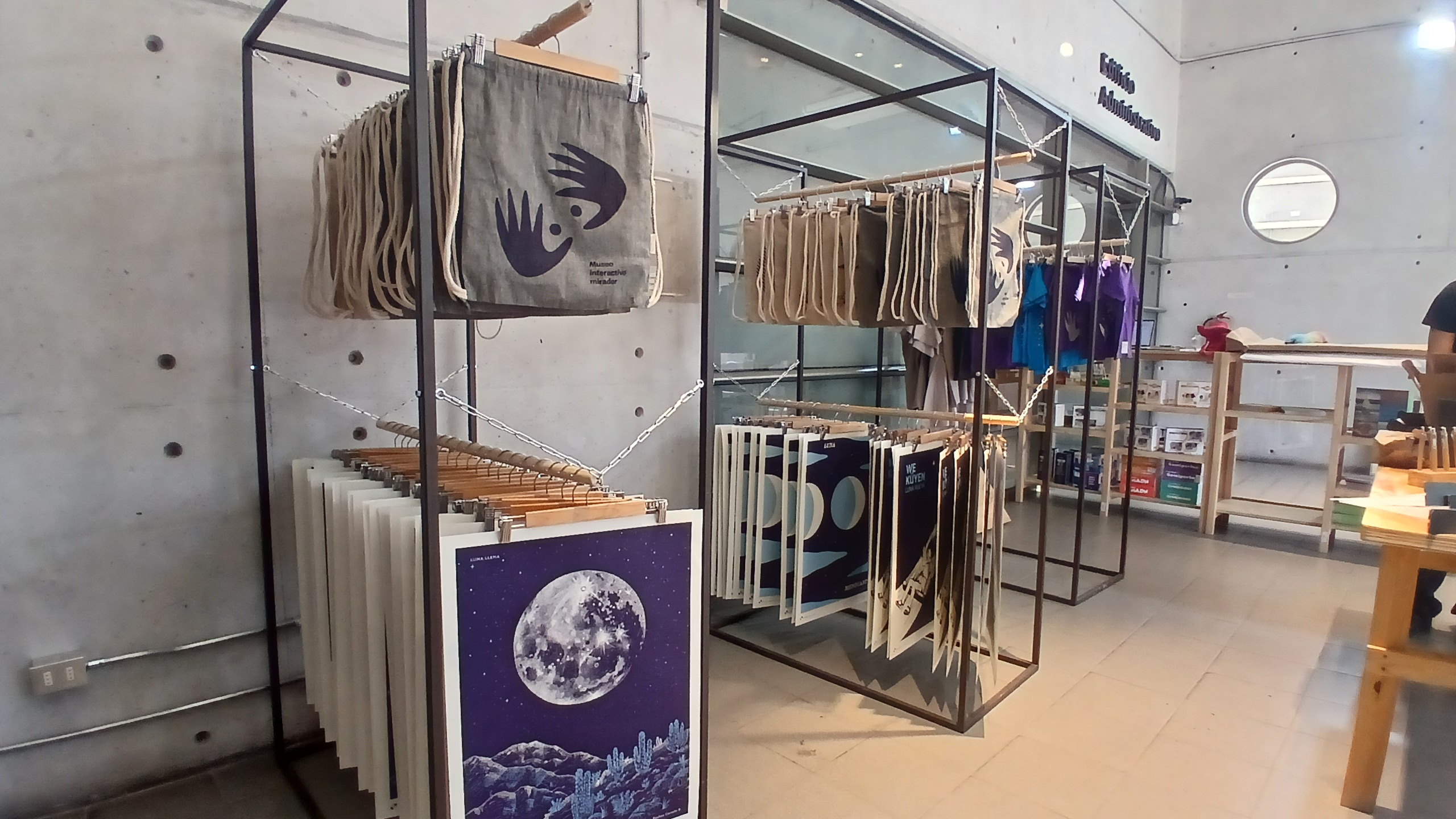 Y a la vez dispondrá de una oferta diversificada de productos que solo se podrán encontrar en el museo, con la finalidad de llevarse un recuerdo de la experiencia vivida en este lugar único en el país. Aquí podrán elegir entre tazones, gorros, libros, poleras, juegos de ingenio y lógica, posters, timbres, botellas o libretas, etcétera, todos con la identidad visual del mim.